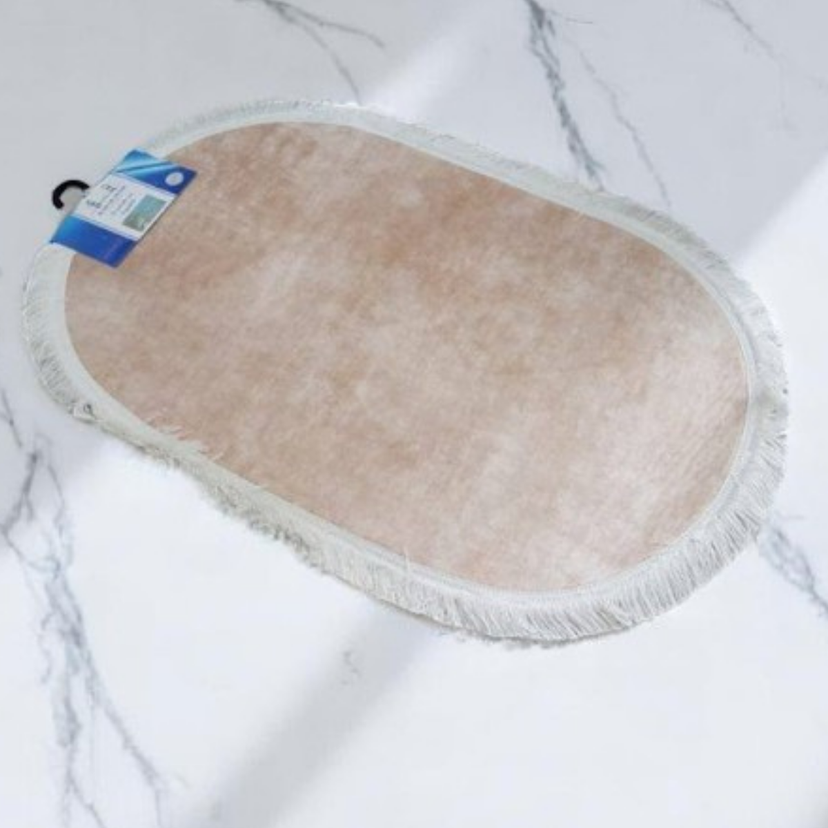 Komplet prostirki u topli zlatno-bež boji (dimenzije 100×60 cm + 50×60 cm) s jednostavnim luksuznim izgledom. Ovalne prostirke s resama po rubu donose toplinu i eleganciju u kupatilo.