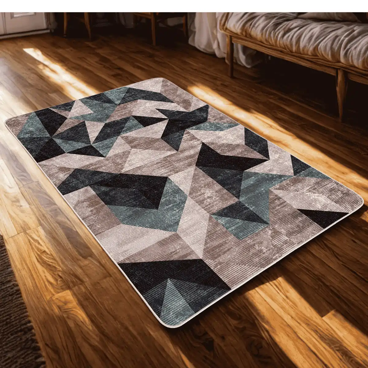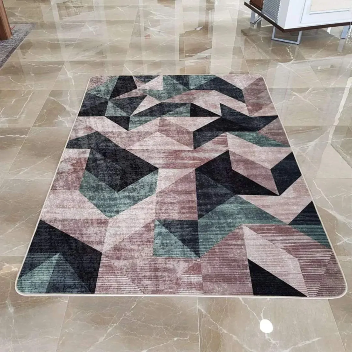 Gossen tepih iz MEA Home kolekcije predstavlja savršen primjer kako moderna geometrija može transformisati prostor. Dinamična kombinacija mint zelene, roza, sive i crne boje u apstraktnim oblicima stvara vizuelni spektakl koji privlači poglede i pokreće razgovore.