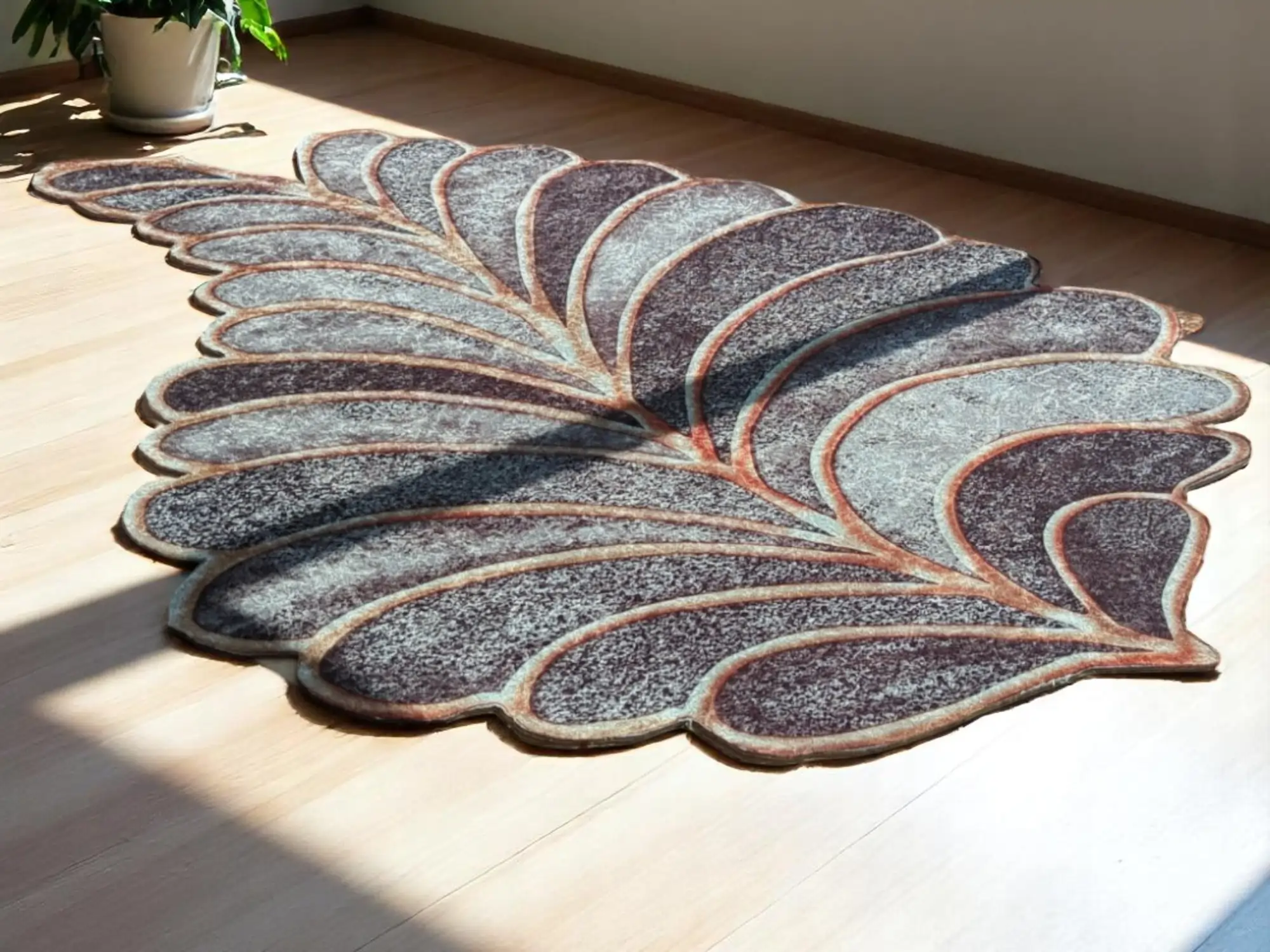 Ovaj tepih se razlikuje od tradicionalnih oblika tepisa. Organski oblik lista s detaljnim teksturama donosi prirodu u vaš dom na drugačiji način. Nekonvencionalni oblik čini ovaj tepih zanimljivim kompadom koji govori o vašoj individualnosti i spremnosti da probate nešto novo. Napredna antibakterijska tehnologija osigurava zdrav ambijent, dok gumirana podloga eliminiše mogućnost klizanja.